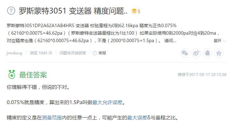 2、羅斯蒙特3051 變送器 精度問(wèn)題(羅斯蒙特3051DP2A62A1AB4HR5 變送器 校驗(yàn)量程為0到62.16kpa