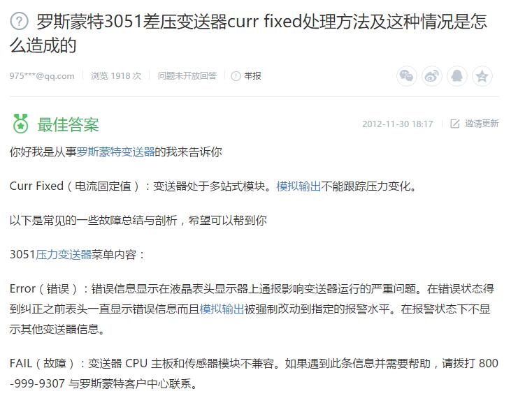 1、羅斯蒙特3051差壓變送器curr fixed處理方法及這種情況是怎么造成的?