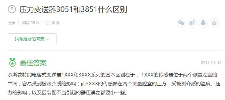國外的變送器排名如下:1.Rosemount-Emerson2.Yokogawa3.E+H4.ABB5.Honeywell6.Foxboro7.Siemens8.Fuji9.SMAR其它廠家可以忽略不計,羅斯蒙特一家市場份額是后面8家份額的總和。在亞洲橫河還能和羅斯蒙特拼一下,歐洲E+H能和羅斯蒙特拼一下。