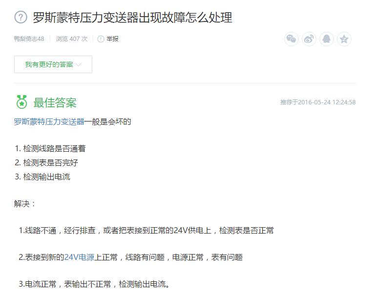 1、羅斯蒙特壓力變送器出現(xiàn)故障怎么處理?