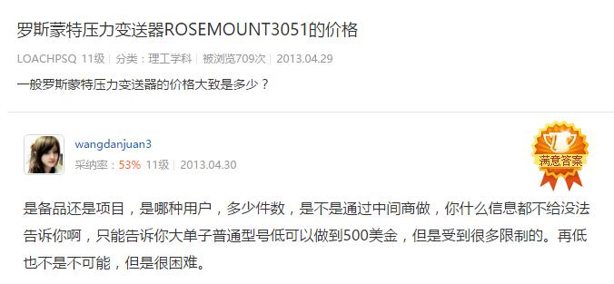 3、羅斯蒙特壓力變送器ROSEMOUNT3051的價(jià)格(一般羅斯蒙特壓力變送器的價(jià)格大致是多少?)