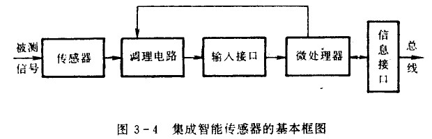 集成智能傳感器的基本組成框圖如圖3-4所示。它包括傳感器、補償和校正、調(diào)理電路、輸入接口、微處理器和信息接口等。其集成形式分單片集成式和混合集成式。初級智能的傳感器只包括圖中的部分環(huán)節(jié).而高級智能傳感器則包括概述所有環(huán)節(jié),成為超大規(guī)凌集成化的傳感器。本章按智能傳感器技術(shù)的發(fā)展分如下三種形式進行分析。