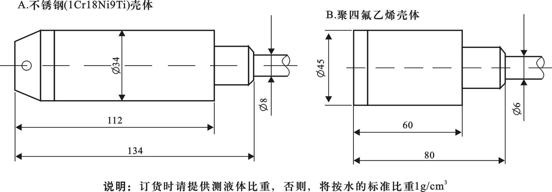 SLK-8010投入式液位變送器選用進(jìn)口帶防腐膜片敏感組件,將芯片不銹鋼(或四氟乙烯)殼體內(nèi)。頂部的鋼帽起保護(hù)傳感器膜片作用,也能使被測(cè)介質(zhì)流暢地接觸到膜片。該產(chǎn)品采用特制的防水通氣電纜,使感壓膜片的背壓腔與大氣良好相通,測(cè)量液位不受外界大氣壓變化的影響,測(cè)量準(zhǔn)確,長(zhǎng)期穩(wěn)定性好,并具有優(yōu)良的密封及防腐性能,可直接投入水、油等液體(包括腐蝕性液體)中長(zhǎng)期使用。聚四氟乙烯材料的外殼及電纜可測(cè)量多種強(qiáng)腐蝕性液體。 技術(shù)指標(biāo):量程:0-0.5~200mH2O 結(jié)構(gòu)尺寸:SLK8010/L2/L3型液位變送器SLK8010/L2型纜式分體液位變送器的壓力探頭為不銹鋼材料,電纜護(hù)套為橡塑,特殊要求可選擇聚四氟乙烯材料。