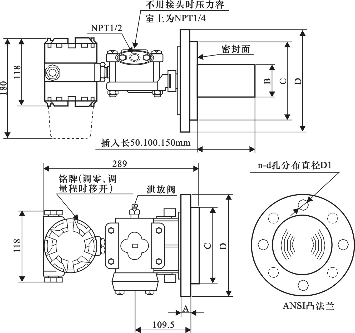 SLK1151型法蘭式液位變送器測量液柱靜壓頭,此壓力等于取壓呂以上的液柱高度乘以液體的特定比重,與容器的容積和形狀無關(guān)。測量的質(zhì)量在很大程度上取決于變送器和導(dǎo)壓管的安裝是否正確。SLK1151LT型變送器是設(shè)計(jì)用在惡劣的環(huán)境中的,在選擇安裝場所時(shí),要小心地減少變送器所受到的溫度梯度、溫度波動(dòng)、振動(dòng)的沖擊。