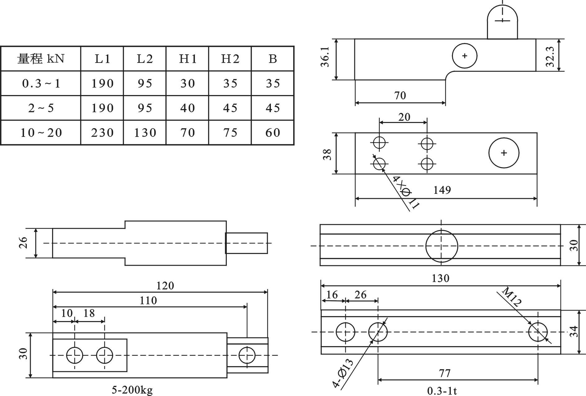 量程:0~0.2、0.5、1.0、2.0、3.0、5.0、10、15t