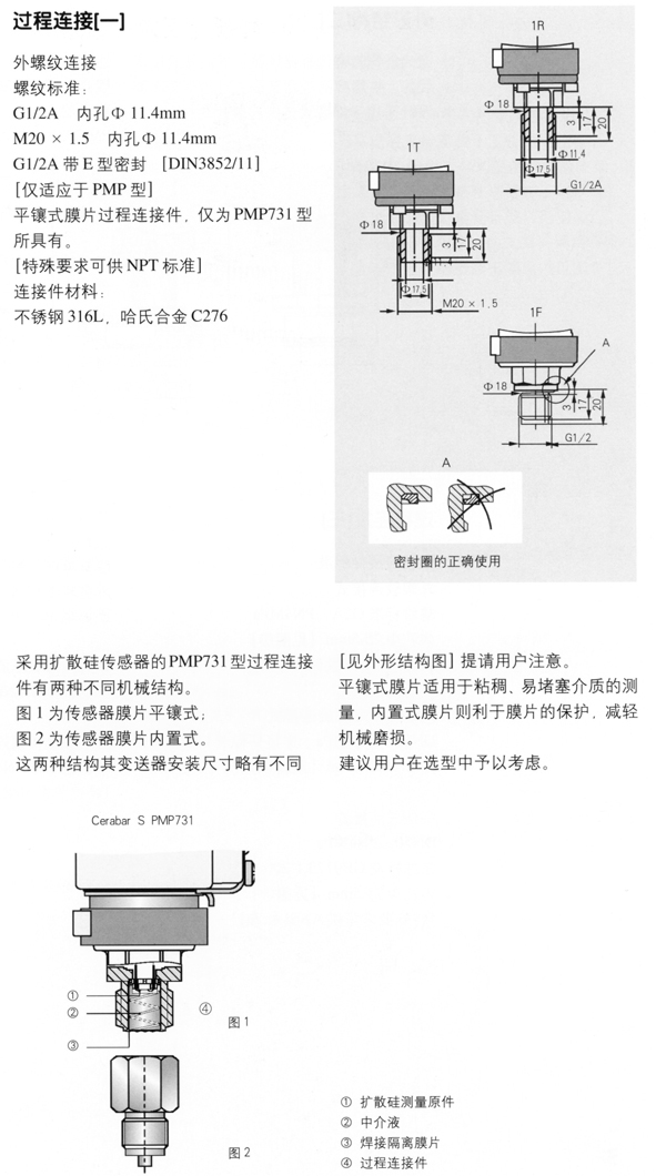 PMC/PMP731智能壓力變送器:壓阻效應(yīng)的壓力測(cè)量,采用擴(kuò)散硅測(cè)量元件,測(cè)量范圍可達(dá)400bar(6000psi).螺紋表面為齊平金屬膜片,適合于高粘度介質(zhì)。