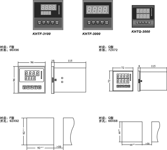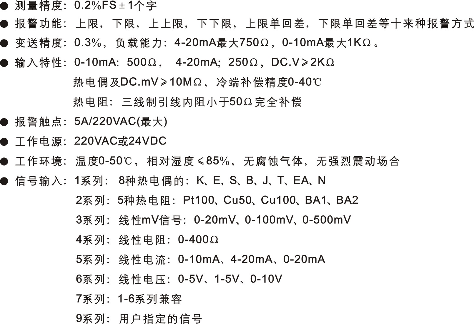 SLKT3000智能數(shù)字顯示報(bào)警儀SLKT3000智能數(shù)字顯示報(bào)警儀采用微處理進(jìn)行控制運(yùn)算,最新隔離設(shè)計(jì),可對(duì)各種非線性輸入信號(hào)進(jìn)行精度極高的線性矯正,可與各種傳感器配合,實(shí)現(xiàn)對(duì)溫度、壓力、液位、流量、速度等測(cè)量信號(hào)的顯示、報(bào)警、傳輸、控制等作用。儀表具有萬(wàn)能信號(hào)輸入、斷線報(bào)警、超量程指示和自校準(zhǔn)、自診斷功能。配帶的串行通信輸出,可與各種帶串行輸入/輸出的設(shè)備進(jìn)行雙向通信,組成網(wǎng)絡(luò)控制系統(tǒng)。 技術(shù)參數(shù):結(jié)構(gòu)尺寸: